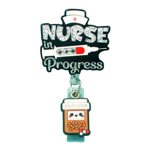 Porta ID con diseño “Nurse in Progress” y acabado brillante. Divertido, ligero y perfecto para acompañarte en cada etapa de tu camino en la salud.