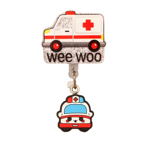 Porta ID con diseño de ambulancia y detalle brillante. Divertido, ligero y perfecto para profesionales que viven el ritmo del emergency life.