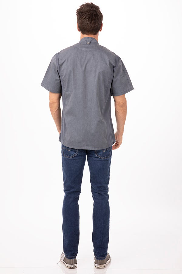 Soporte para delantal en la parte posterior del cuello con un botón a presión grabado