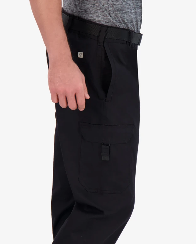 Bolsillos laterales, lazo resistente al agua y bolsillo en el muslo con velcro