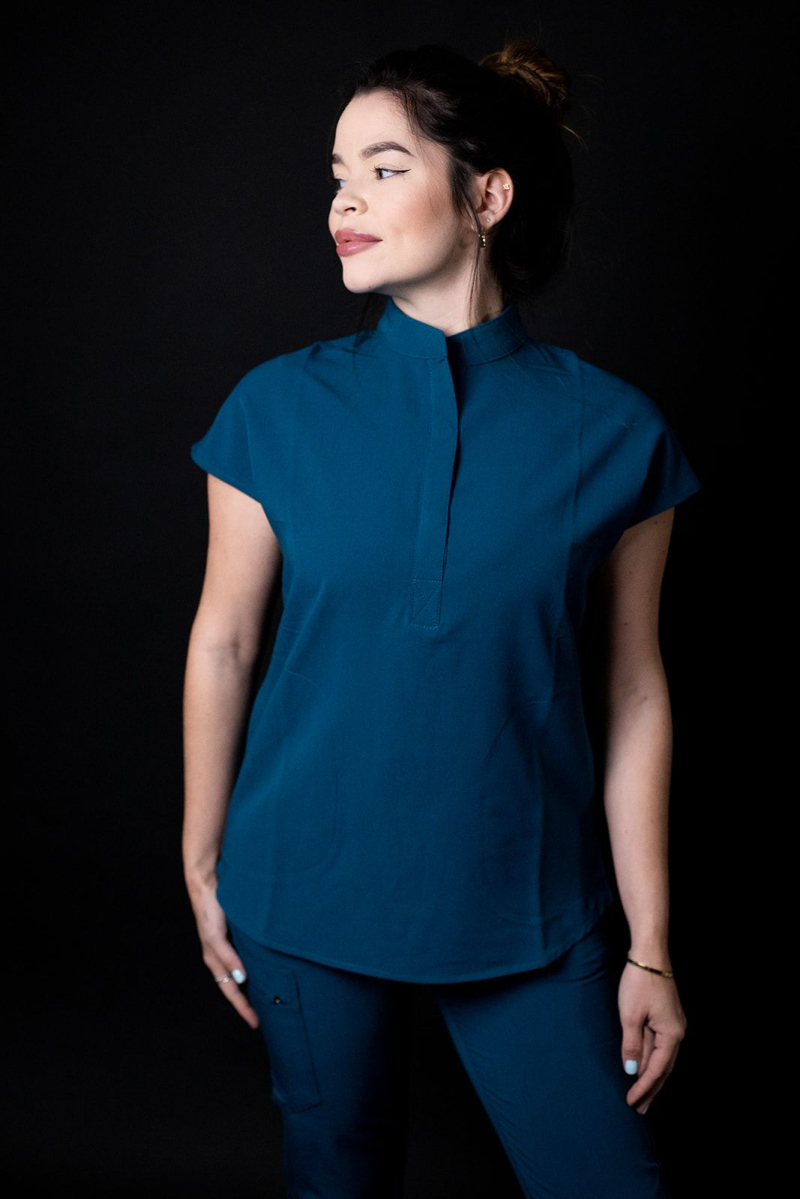 - Mandarin Collar with magnet botton.