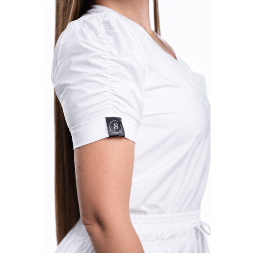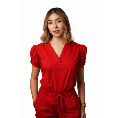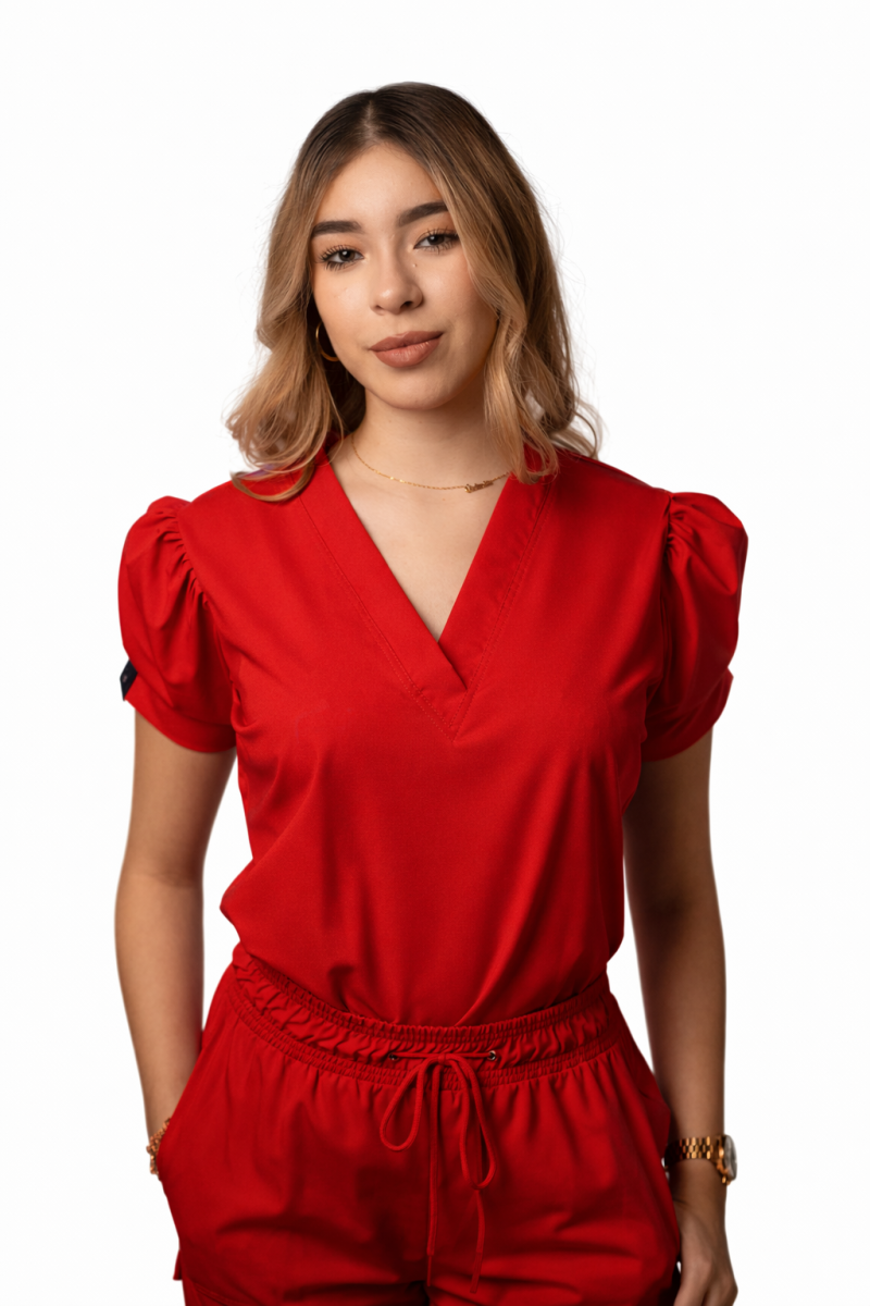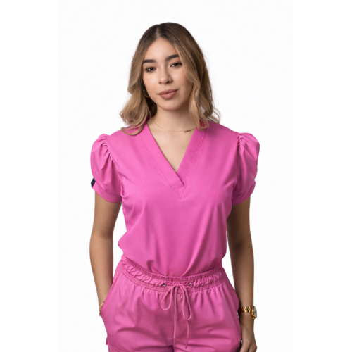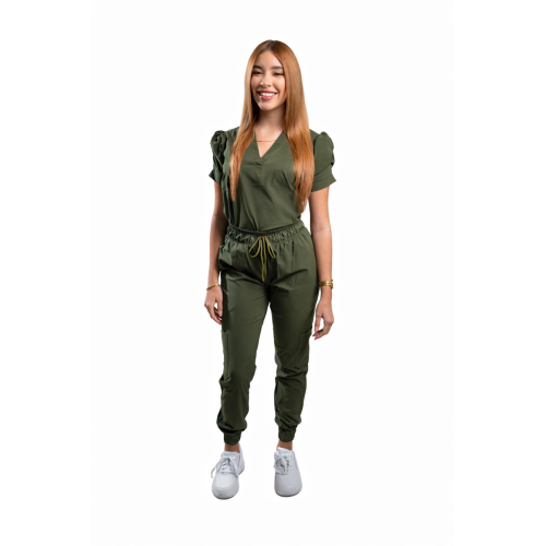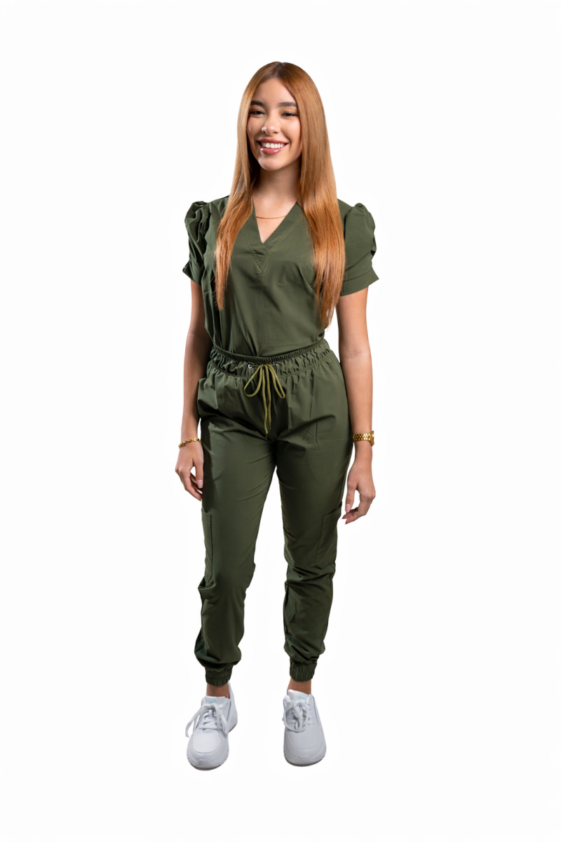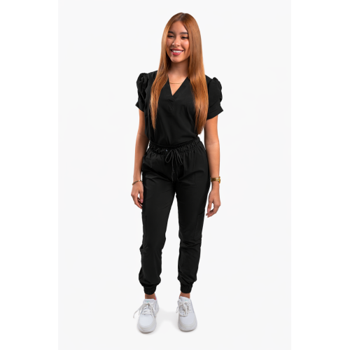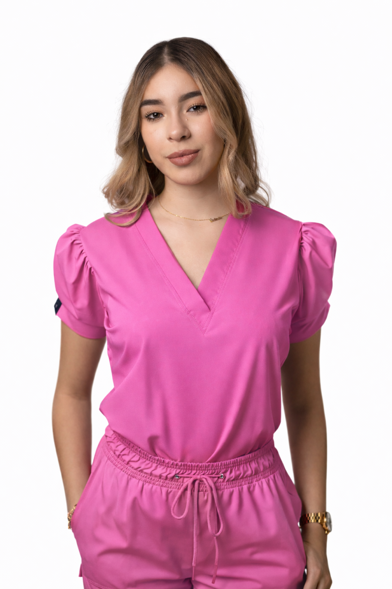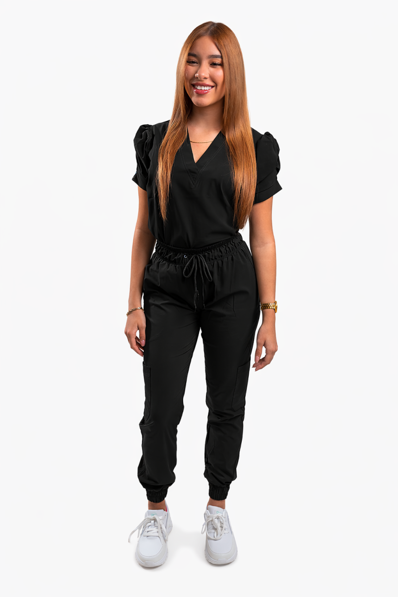 Set de Scrubs camisa y pantalon, Este precioso uniforme es uno de los mas buscados, es uno moderno y elegante, camisa cuello v, con mangas tipo princesa para dar un look mas elegante, El pantalon es tipo jogger con elastico y cordón de ajuste en la cintura. Este uniforme ideal para cualquier campo medico, esteticista y profesionales de la belleza.