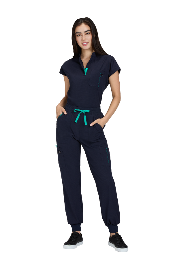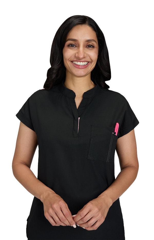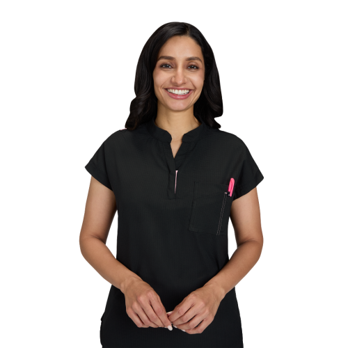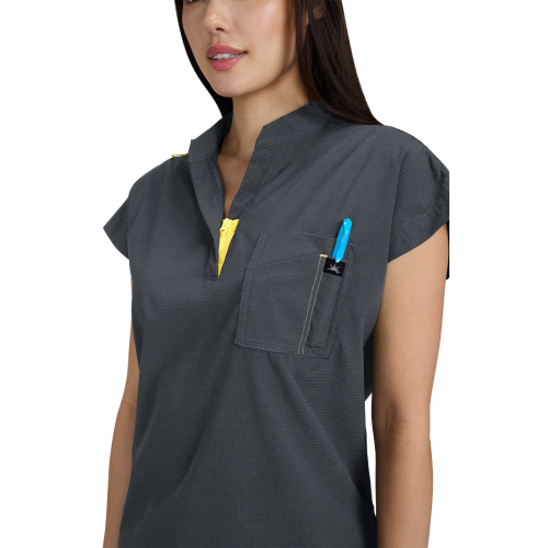 Catrin Top Blusa Scrub Moderna con Cierre – Suavidad y Resistencia. Diseñada para brindar comodidad, estilo y durabilidad, esta blusa scrub cuenta con tela ExoFlex™ ripstop elástica, resistente pero increíblemente suave al tacto. Su cuello con zipper le da un toque moderno, mientras que el bolsillo combinado en el pecho con espacio para bolígrafos mantiene todo lo que necesitas a la mano. Las aberturas laterales permiten mayor movilidad y puedes usarla por dentro o por fuera del pantalón para un look profesional y versátil. Características: Cuello con cierre (zipper) moderno Bolsillo doble en el pecho con espacio para bolígrafo Cordón para ID en contraste Tela ripstop elástica, suave y resistente Tela: 97% poliéster / 3% spandex Largo (talla Small): 25”
