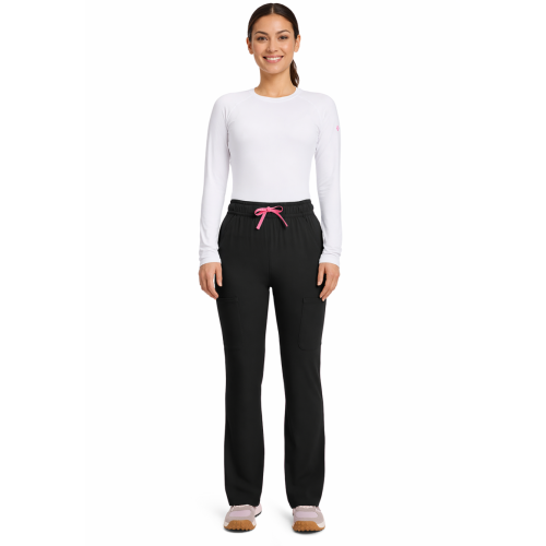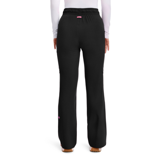 Pantalón de tiro alto con un toque de campana, perfecto para un look moderno y favorecedor. Luce ideal con tops médicos por dentro o ligeramente cortos. Su tela súper elástica brinda comodidad y libertad de movimiento, mientras sus bolsillos tipo cargo añaden practicidad sin perder su silueta estilizada. Entrepierna: 29"
