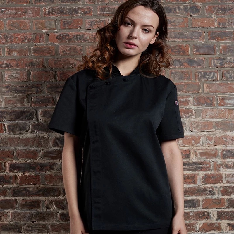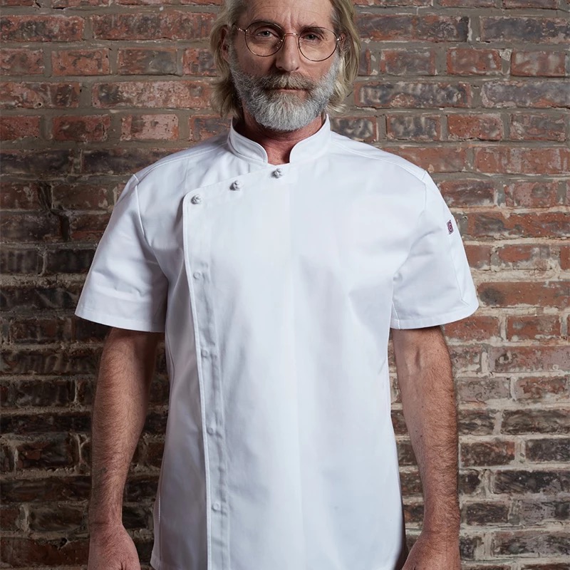 - Hidden-Placket-Cross-Collar-Chef-Coat