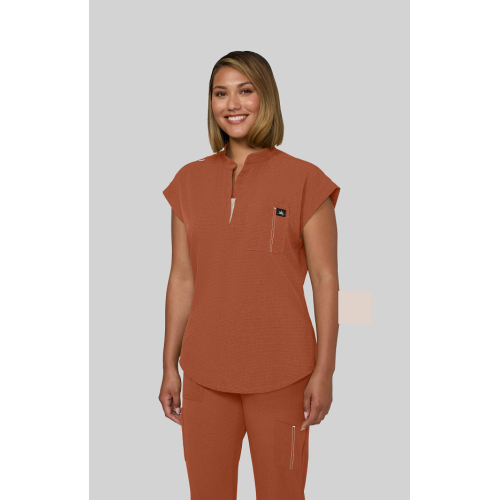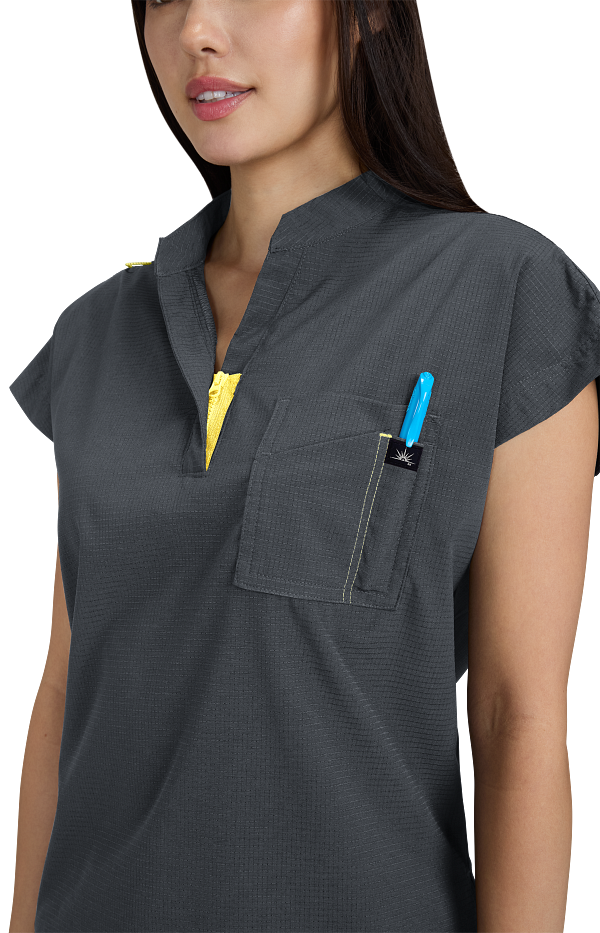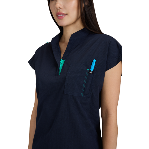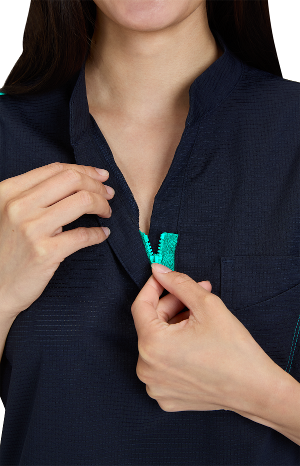 Catrin Top Blusa Scrub Moderna con Cierre – Suavidad y Resistencia. Diseñada para brindar comodidad, estilo y durabilidad, esta blusa scrub cuenta con tela ExoFlex™ ripstop elástica, resistente pero increíblemente suave al tacto. Su cuello con zipper le da un toque moderno, mientras que el bolsillo combinado en el pecho con espacio para bolígrafos mantiene todo lo que necesitas a la mano. Las aberturas laterales permiten mayor movilidad y puedes usarla por dentro o por fuera del pantalón para un look profesional y versátil. Características: Cuello con cierre (zipper) moderno Bolsillo doble en el pecho con espacio para bolígrafo Cordón para ID en contraste Tela ripstop elástica, suave y resistente Tela: 97% poliéster / 3% spandex Largo (talla Small): 25”