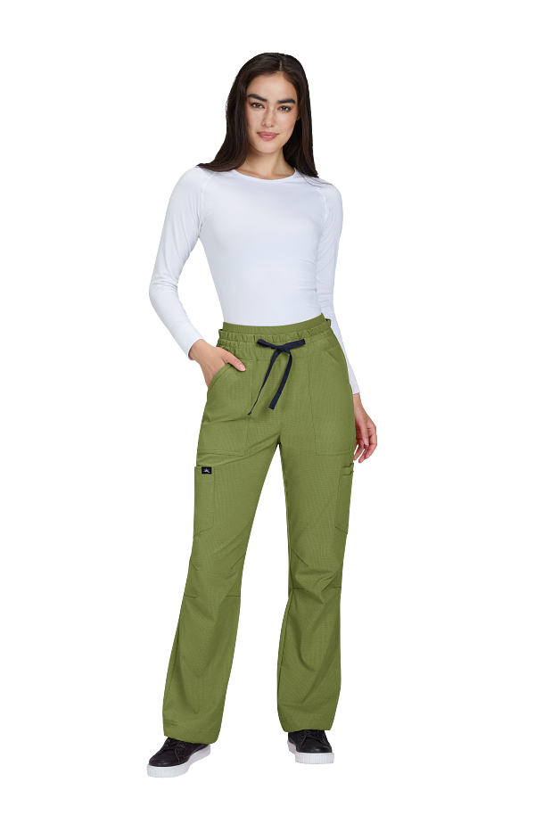 Freda Pant Pantalón scrub ultramoderno de pierna ancha (wide leg) y ajuste más relajado, confeccionado con la exclusiva tela ExoFlex™ ripstop elástica, extremadamente resistente pero con una sensación suave y sedosa. Ajuste contemporáneo. Cintura elástica con cordón ajustable en contraste, 6 bolsillos funcionales, Corte más holgado para mayor comodidad. Tela: 97% poliéster, 3% spandex ripstop stretch