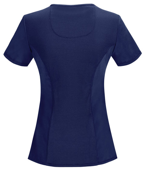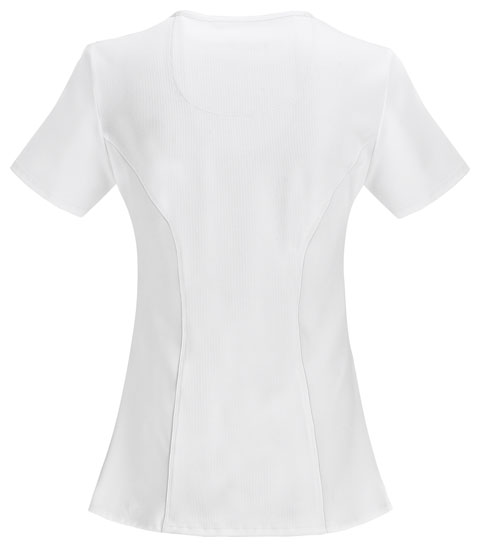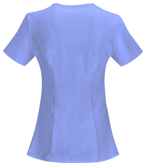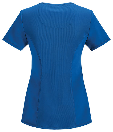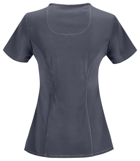- Stretch rib knit at the center back panel gives this top its slimming shape and allows for extra movement and comfort