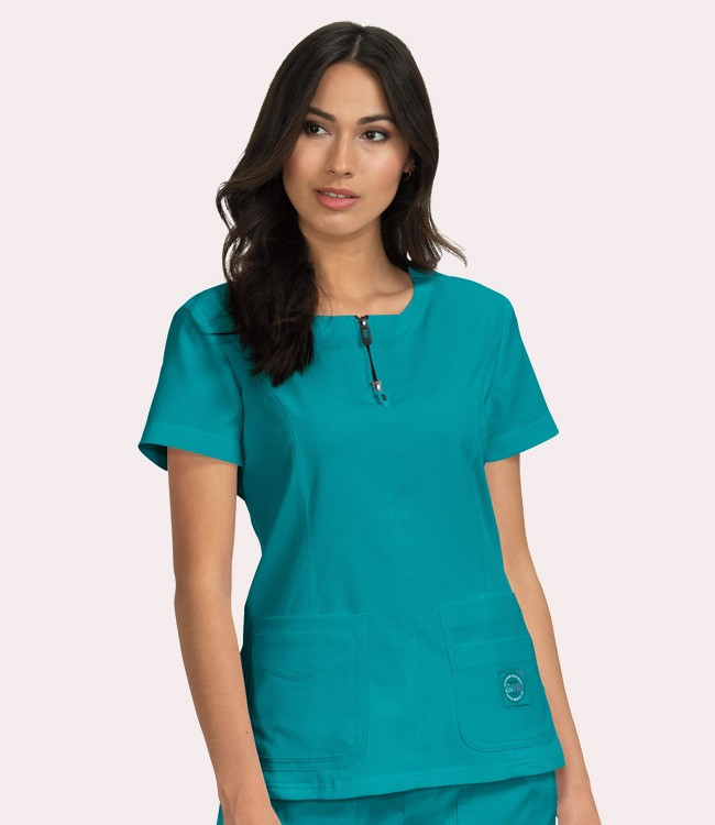 - Zipper detail at front neck