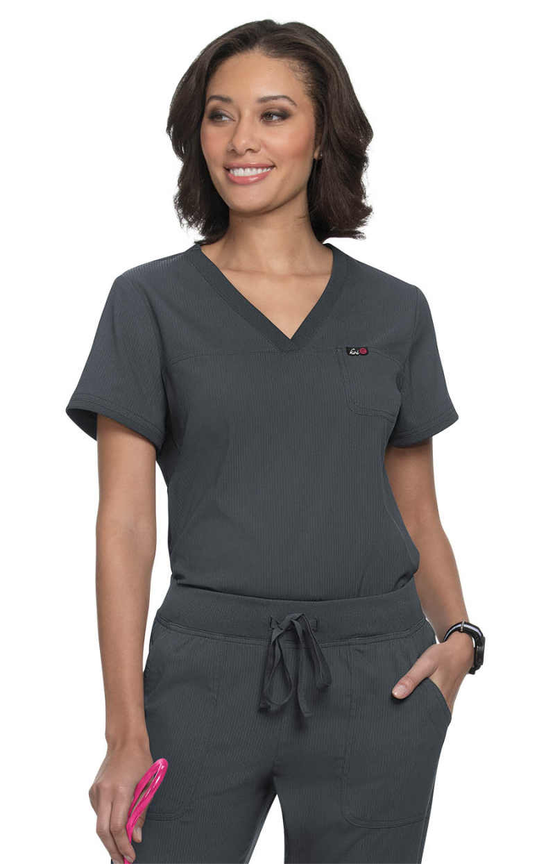 Koi Lite collection is a super stylish women’s scrub top with added features that you will absolutely love. With moisture wicking technology. The 2-way mechanical stretch and rib side panels allow you to move comfortably while maintaining that slimming fit.