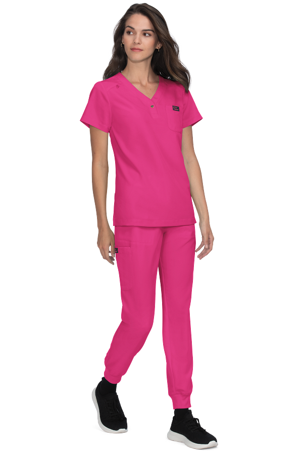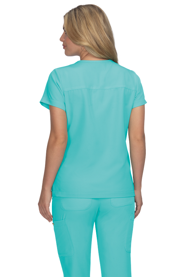 his super cute top features a heart-shaped snap at neck. Modern classic fit.